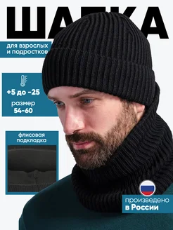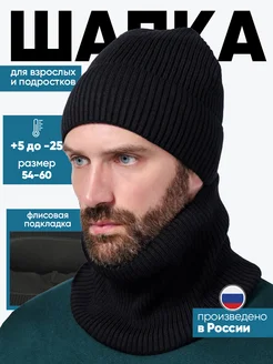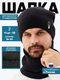 Шапка со снудом зимняя вязаная на флисе модная