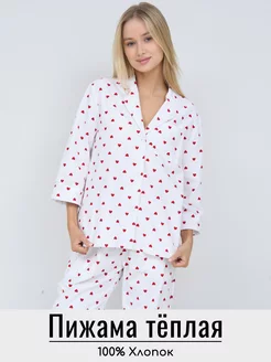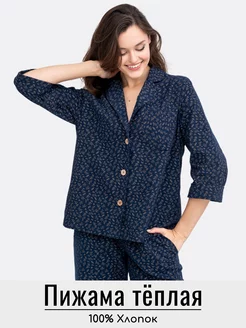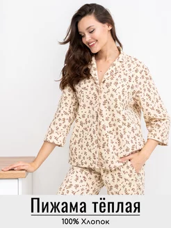 Фланелевая пижама теплая, рубашка с брюками