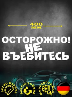 Наклейка на автомобиль "Осторожно не в**итесь" белый 40х14