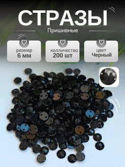 Набор Стразы пришивные черные круг 6мм (200шт)