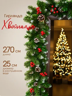 Еловая хвойная гирлянда 2 7м с шишками и ягодами