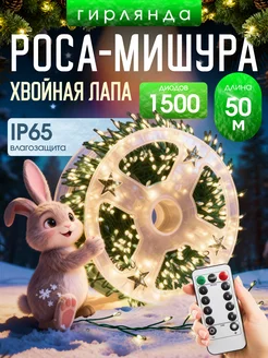 Гирлянда хвойная лапа роса мишура 50 м зеленый провод