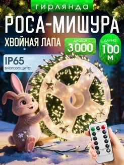 Гирлянда хвойная лапа роса мишура 100 м зеленый провод