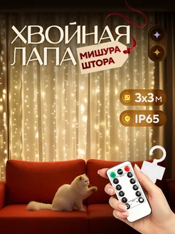 Гирлянда штора мишура хвойная лапа 3х3 900 LED