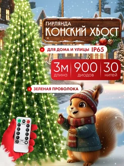 Гирлянда на елку Конский Хвост роса 900 ламп 3 метра