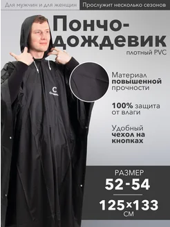 Пончо-дождевик, плотный PVC, 125х133 см. на кнопках, капюшон