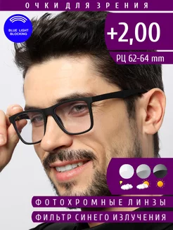 Очки компьютерные фотохромные с диоптриями +2.00 BlueBlocker