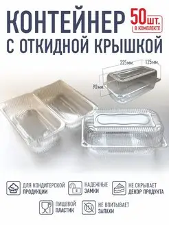 Контейнер ракушка одноразовый с откидной крышкой, 50 штук