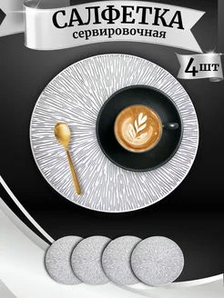 Салфетки на стол сервировочные круглые 4 шт серебряные