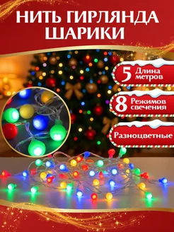 Гирлянда новогодняя Нить 5 м с цветными шариками на елку