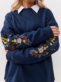 Свитшот оверсайз с вышивкой и начесом барашек