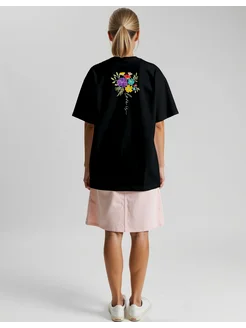 Футболка оверсайз с вышивкой пич-эффект черная