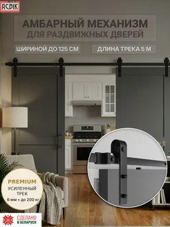 Амбарный механизм для двух раздвижных дверей трек 5 метров