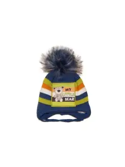 Шапка детская зимняя для мальчика на завязках с помпоном