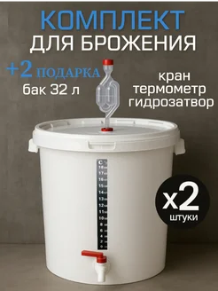 Бак для брожения 30 л с гидрозатвором, 2 штуки