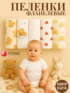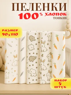 Пеленки хлопковые для новорожденных детей набор 5 штук