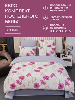 Постельное белье сатин Евро на резинке 160х200х25 см