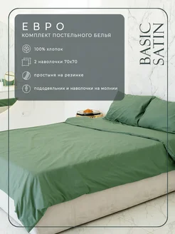 Постельное белье Евро на резинке, наволочки 70х70, сатин