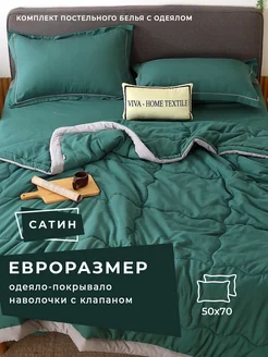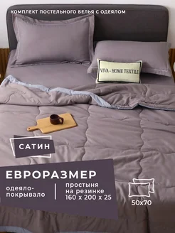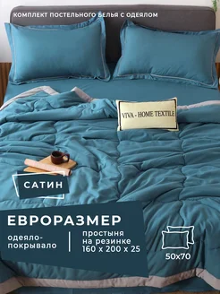 Постельное белье с одеялом Евро сатин на резинке 160х200