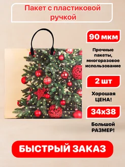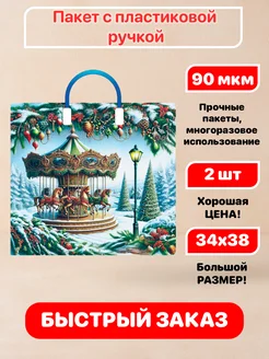 Пакет пластиковая ручка Карусель новогодний 38х34см 90мкм