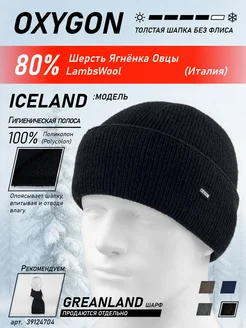 Шапка Baikal бини зимняя вязаная утепленная с отворотом