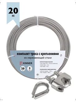 Трос из нержавеющей стали 3мм 20м зажим 4 шт коуш 2 шт