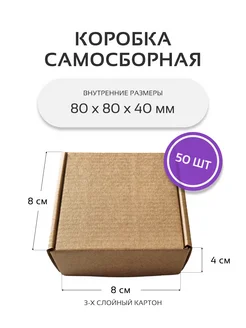 Коробка картонная самосборная гофрокороб 8х8х4 см 50 шт