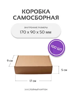 Коробка картонная самосборная 17х9х5 см 100 шт