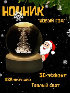 Ночник светодиодный стеклянный шар сфера Новый Год
