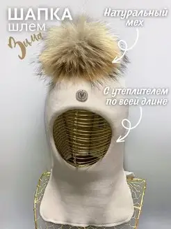 Шапка-шлем зимний детская с помпоном