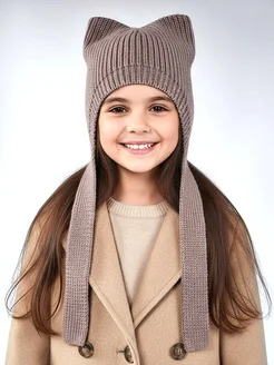 Шапка чепчик с ушками для девочки вязаная осень