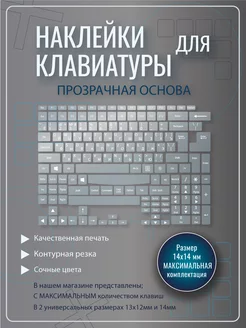 Наклейки на клавиатуру Прозрачные с белыми буквами 14 мм