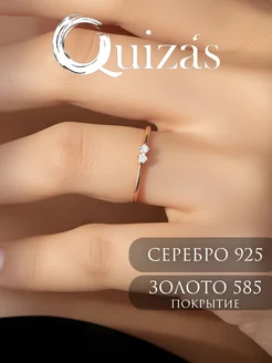 Кольцо из серебра 925 позолоченное 585 с фианитами