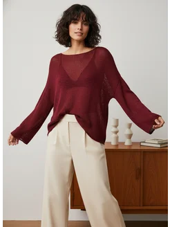 Свитер длинный паутинка тонкий Oversize большие размеры