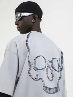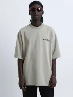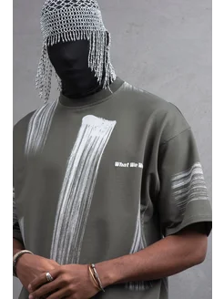Футболка хаки оверсайз с принтом хлопок унисекс