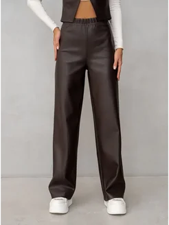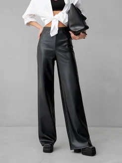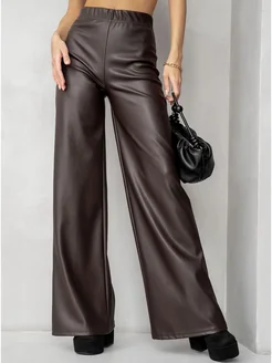 Брюки кожаные палаццо штаны широкие прямой крой