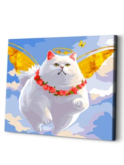 Кот с ангелами Алмазная мозаика на подрамнике 40х50