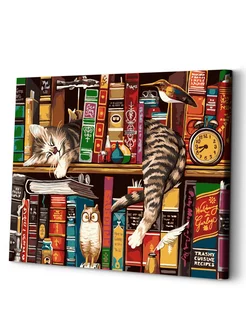 Кот на книжной полке Картина по номерам на холсте 40х50