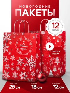 Пакеты новогодние подарочные набор бумажные крафт 12 шт