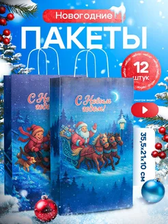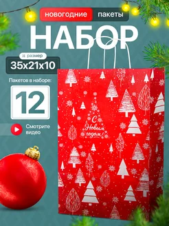 набор новогодних подарочных пакетов 12 шт бумажные