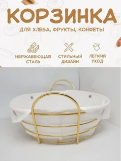 Хлебница металлическая с хлопковой вставкой корзина