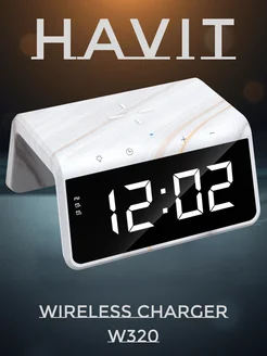 W320 Беспроводная зарядка с часами (marble)