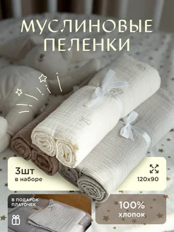 Муслиновые пеленки для новорожденных хлопок 120х90 набор 3шт
