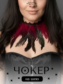 Чокер на шею "Fly" перьевой. Цвет пурпурно-черный