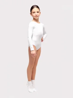 Купальник гимнастический белый с рукавом 3 4 хлопок