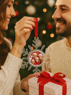 Ёлочный шар «Снежинка» с фото. Заготовки 10 см