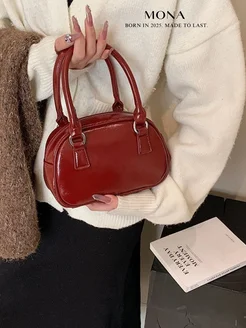 Сумка клатч багет кросс боди бордовая в стиле винтажа