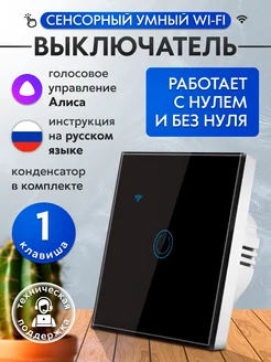 Умный выключатель с Алисой и Wi-Fi одноклавишный сенсорный