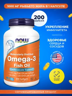 Омега 3 NOW 1000 мг 200 капсул рыбий жир бад