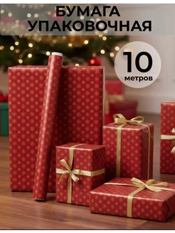 Бумага упаковочная "Снежинки на красном" 70х1000 cм